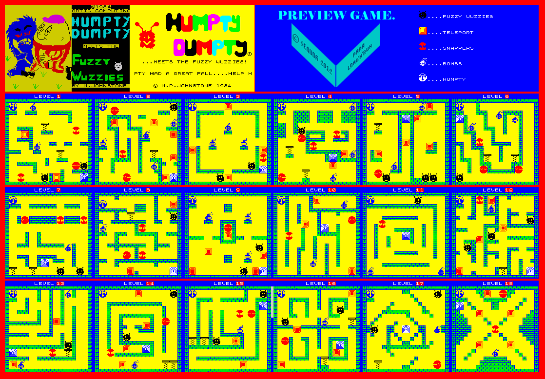 | http://www.worldofspectrum.org/pub/sinclair/games-maps/h/HumptyDumptyMeetsTheFuzzyWuzzies.png (Sequor - brand new tip!) 17207 | ||||||